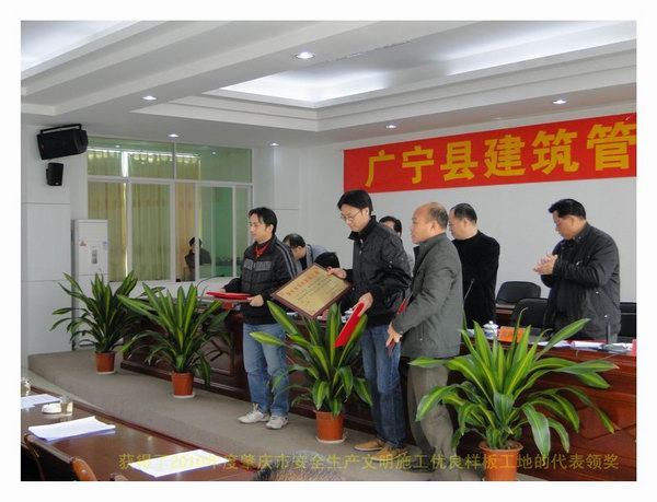 按照廣寧縣住房和城鄉(xiāng)規(guī)劃建設(shè)局寧住建字[2011]02號(hào)《關(guān)于表彰2010年度優(yōu)良樣板工程、“雙優(yōu)”工地、建筑管理優(yōu)秀先進(jìn)集體和個(gè)人的決定》的通知,由佛山市房建集團(tuán)有限公司施工的廣寧縣百盈花園24號(hào)樓獲得了四個(gè)獎(jiǎng)勵(lì),其中百盈花園24號(hào)樓;1、獲得了2010年度肇慶市安全生產(chǎn)文明施工優(yōu)良樣板工地(獲得獎(jiǎng)勵(lì)5000元);2、獲得2010年度優(yōu)秀項(xiàng)目經(jīng)理鄧建軍(獲得獎(jiǎng)勵(lì)800元);3、獲得2010年度、安全生產(chǎn)管理先進(jìn)工作者李盤基(獲得獎(jiǎng)勵(lì)500元);4、房建集團(tuán)有限公司獲得2010年度質(zhì)量、安全管理先進(jìn)單位(獲得獎(jiǎng)勵(lì)1000元)。