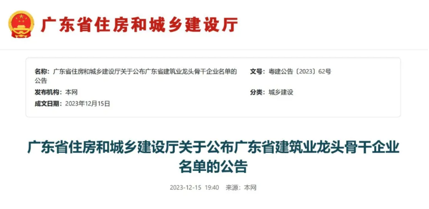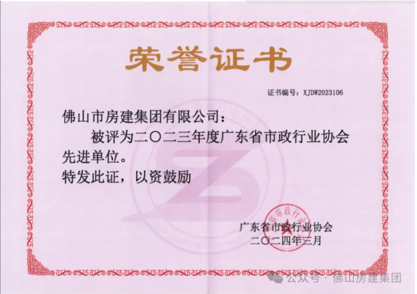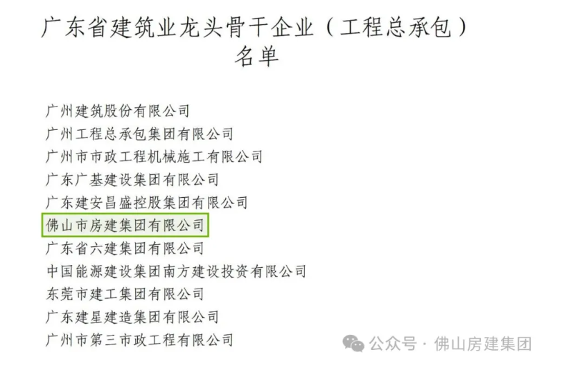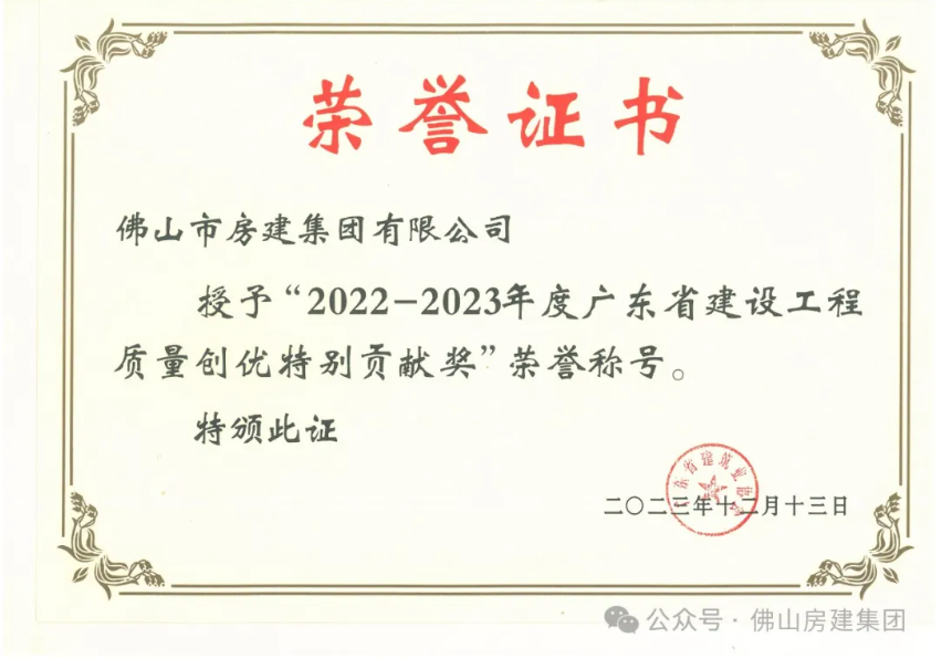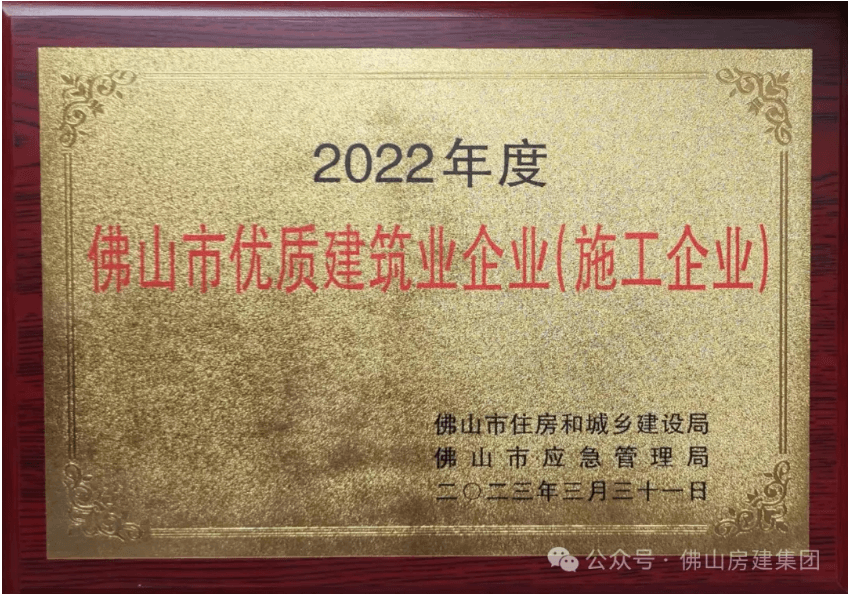 喜訊:佛山房建集團榮獲2023年度佛山市優(yōu)質建筑業(yè)企業(yè)稱號。