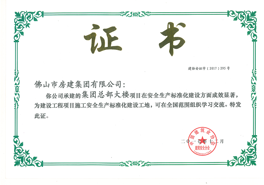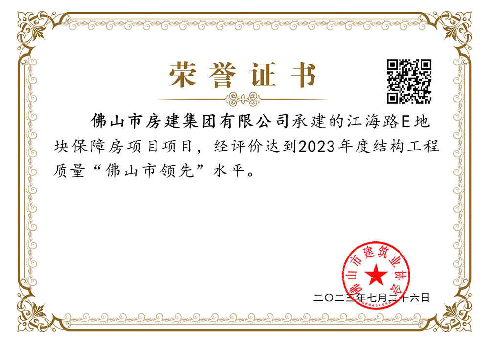 結(jié)構(gòu)工程質(zhì)量“佛山市先進(jìn)”水平
