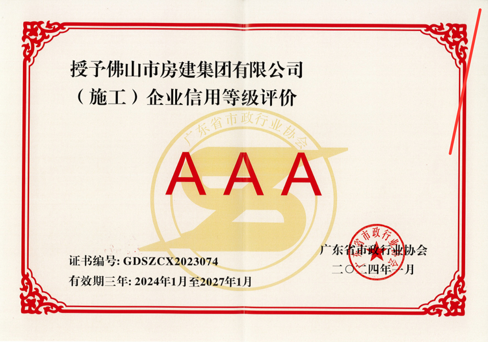 廣東省市政行業(yè)協(xié)會(huì)信用等級(jí)3A級(jí)企業(yè)